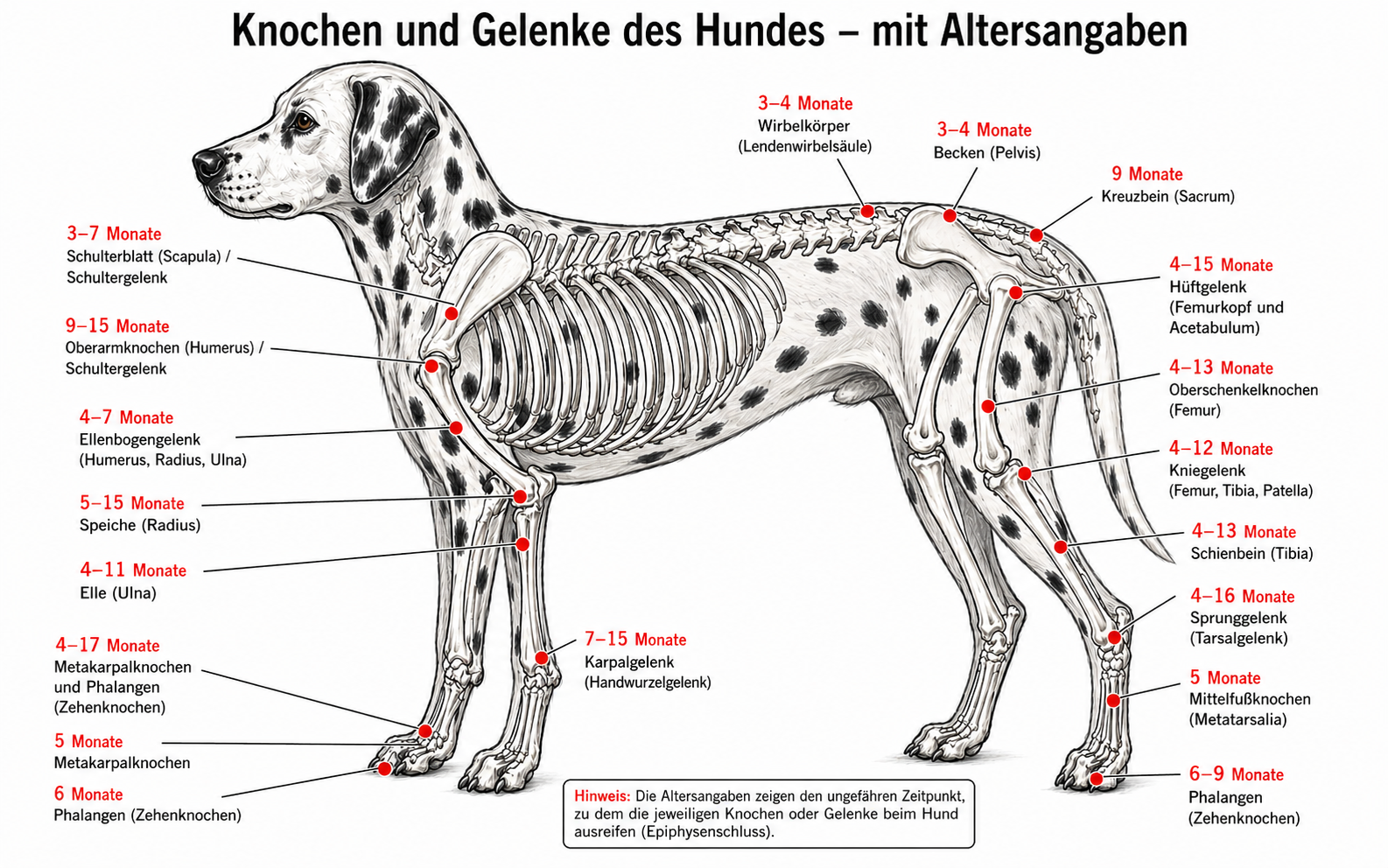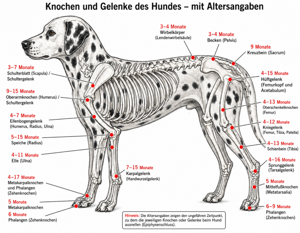 Wenn man sich das Skelett eines Hundes anschaut – mit all den Wachstumsfugen, die sich erst nach und nach schließen – wird eines schnell klar: Ein Welpe ist kein „kleiner fertiger Hund“. Er ist im Aufbau. Und zwar komplett.